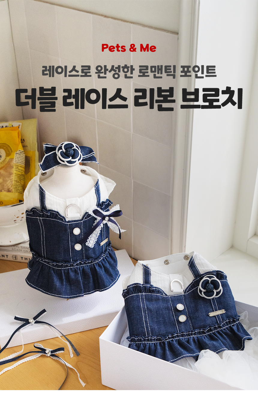 더블 레이스 리본 브로치